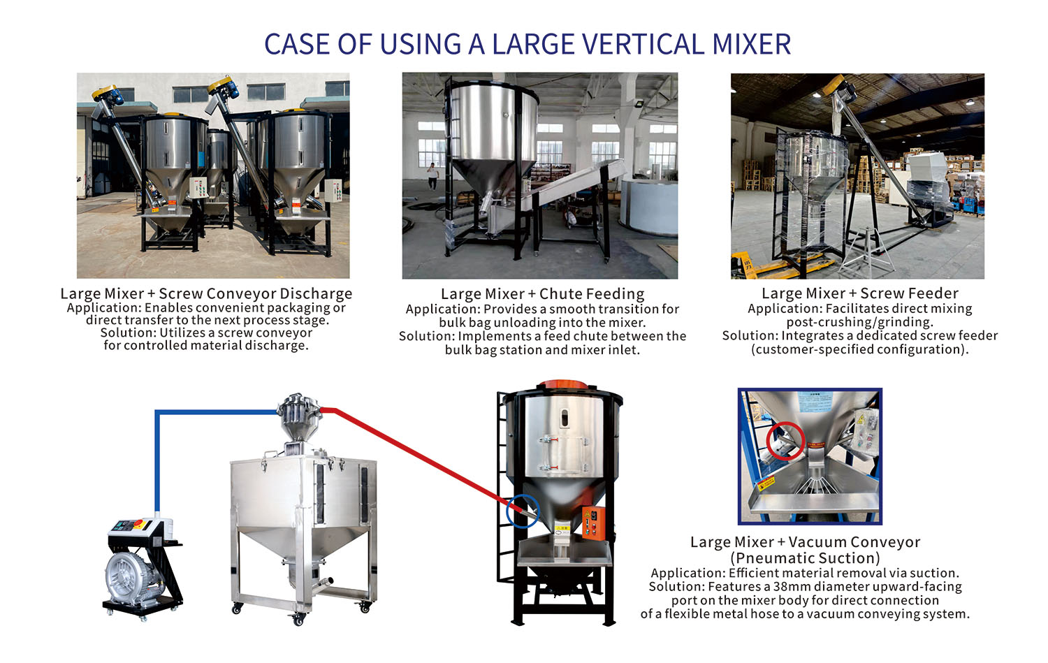 Башенная конструкция обеспечивает вертикальный поток материала. Многослойные мешалки (шнековые/плуговые лопасти) обеспечивают контролируемое время пребывания и распределение. Обрабатывает от 5 до 100 тонн/партию.